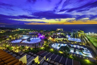 Hotelul Bellis Deluxe 5* Belek, situat într-o zonă verde extinsă, înconjurată de pini cu plaja privată pe coasta mediteraneană, ne oferă 5 piscine, parc acvatic și o piscină interioară.