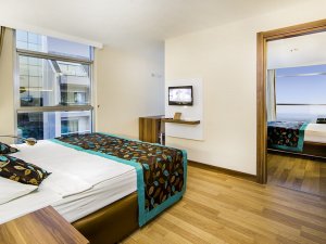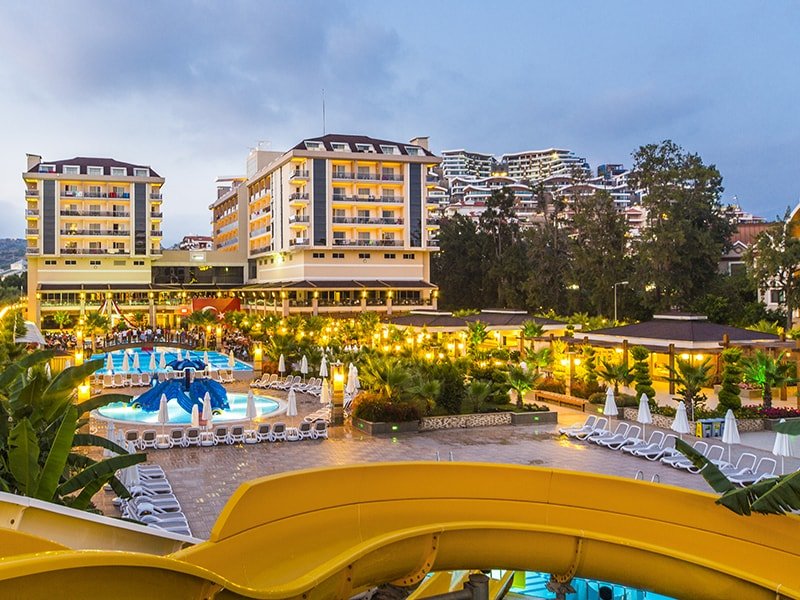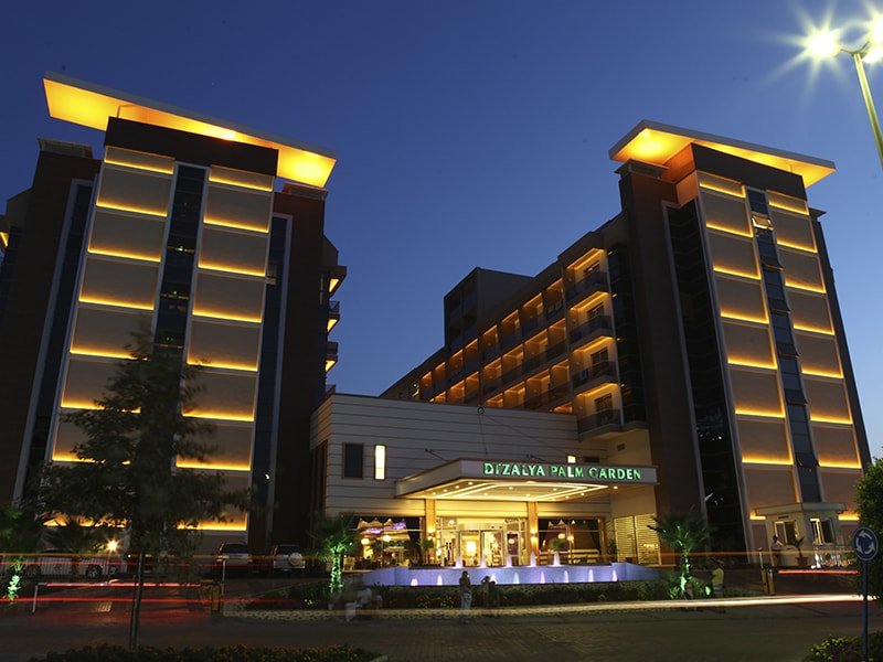 Hotelul Dizalya Palm Garden este situat la doar 10 minute de mers pe jos până la plajă. Toate spațiile de cazare au TV prin satelit, aer condiționat și telefon. Aici vă puteți bucura de vedere la mare.