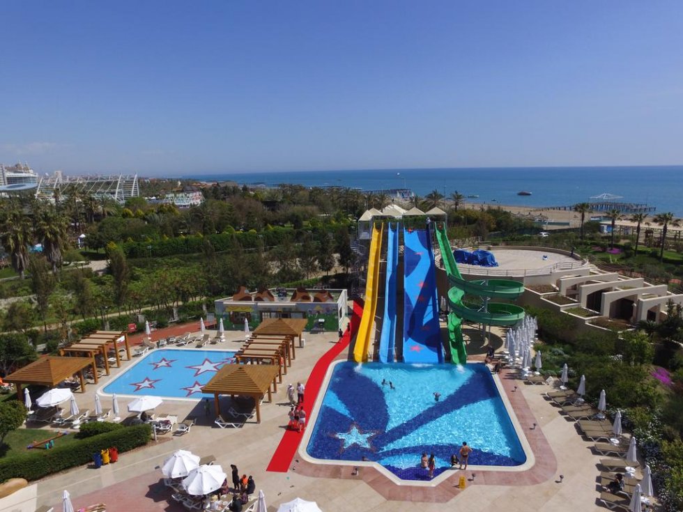 Acest hotel se află la malul mării, pe coasta mediteraneană. Oferă plajă privată cu steag albastru pentru una dintre cele mai curate plaje, centru spa şi piscină mare în aer liber, cu tobogane de apă. Hotelul are design interior luxos și oferă camere moderne și WiFi gratuit în zonele publice.