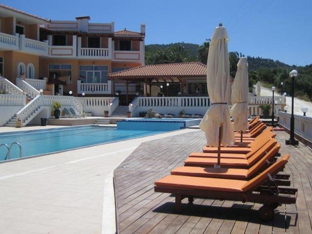 Hotelul pune la dispozitie: receptie, restaurant cu specific traditional grecesc si international, bar, lounge, seif (contra cost), babysitting (la cerere si contra cost), piscina pentru adulti, piscina pentru copii, loc de joaca pentru copii, serviciu de inchiriere masini si parcare gratuita.