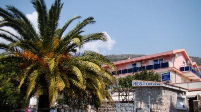 На первом этаже виллы расположен недорогой ресторан «Atlantik», работающий в сезонное время и предлагающий традиционные блюда черногорской кухни. Комплексное питание по схеме BB (завтраки) необходимо заказывать заранее, а на месте можно воспользоваться обедами и ужинами по системе A la carte (выбор из меню). Ресторан располагает открытой зеленой террасой и, что очень важно для спокойного отдыха в апартаментах, не проводит развлекательных мероприятий. В окрестностях виллы расположено несколько других ресторанов и кафе, а также пара продуктовых магазинов. В удаление 1 км от апартаментов находится центральный супермаркет Бечичи (Megamarket), а также небольшой аквапарк при отеле (Mediteran).