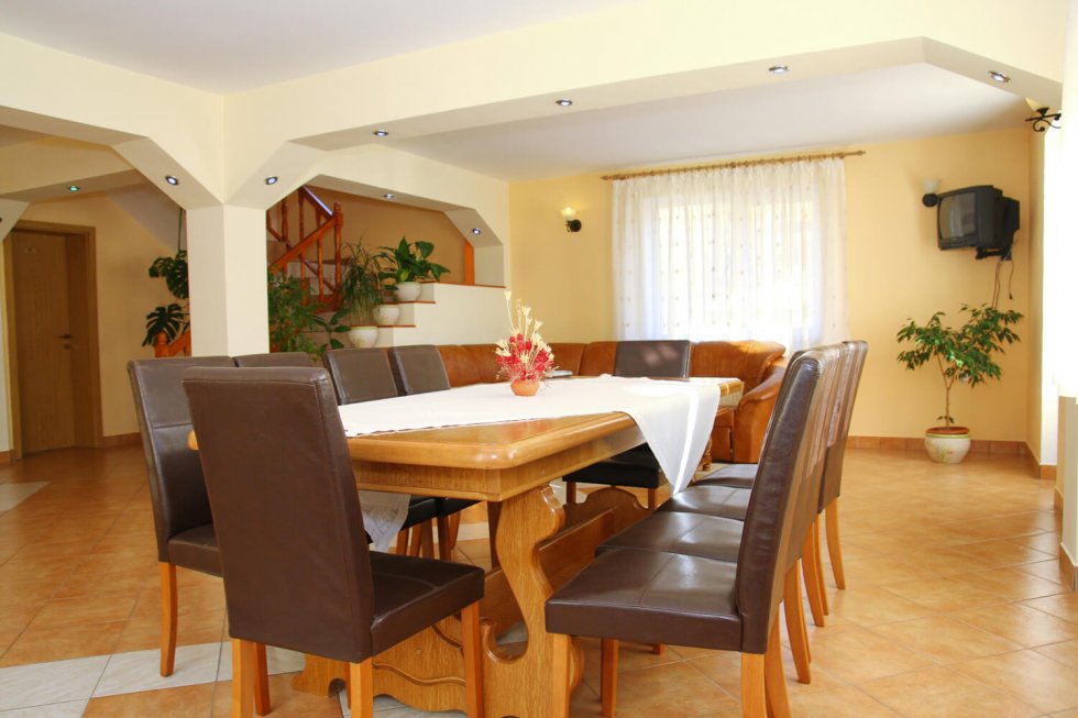 Această pensiune are în total 7 camere duble, fiecare dotată cu mobilă confortabilă, televizor și duș cu veceu. La primul etaj este o sală de mese și o bucătarie dotată cu toate cele necesare pentru a pregăti de mâncare.
