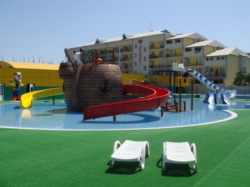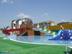 - Un singur complex de agrement cu apă,bazin de 550m3 cu trei nivele de adincime (0.80 m, 1.20 m, 1.65 m) și calculat pentru 200 de persoane în același timp, zona pentru copii (aquapark) de 1610.6 m2, cu o varietate de iazuri ornamentale de aproximativ 220m3;