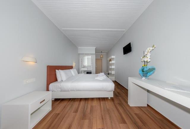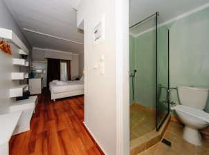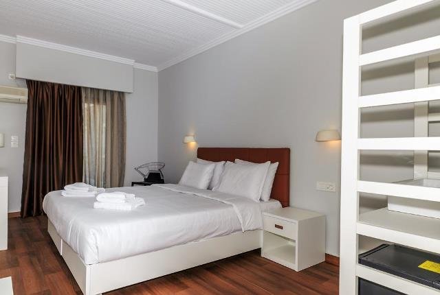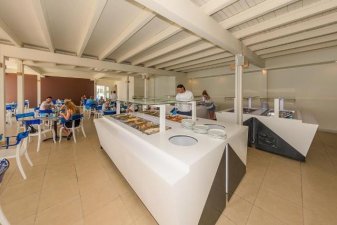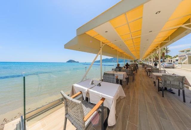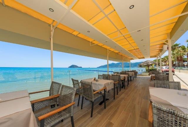 Este situat în imediata apropiere de plaja Agios Sostis și oferă un bar la piscină, cu sucuri proaspete, băuturi, băuturi răcoritoare și cocktailuri; Restaurantul principal cu un bufet bogat pentru micul dejun, prânz sau cină; Un restaurant à la carte cu o varietate de preparate din bucătăria grecească și internațională. În plus, hotelul organizează divertisment de seară cu muzică live, dans tradițional și bucătăria grecească. Restaurantul interior cu bufet (All-In).